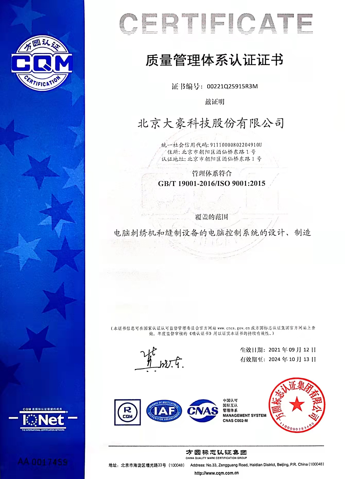 经过30余年的持续发展与创新,大豪科技已发展成为全球较大规模的工业缝制机械设备行业电控系统供应商,能够为国内外设备厂家提供全方位的电控产品、技术服务和解决方案。大豪品牌在国内外市场享有较高声誉。