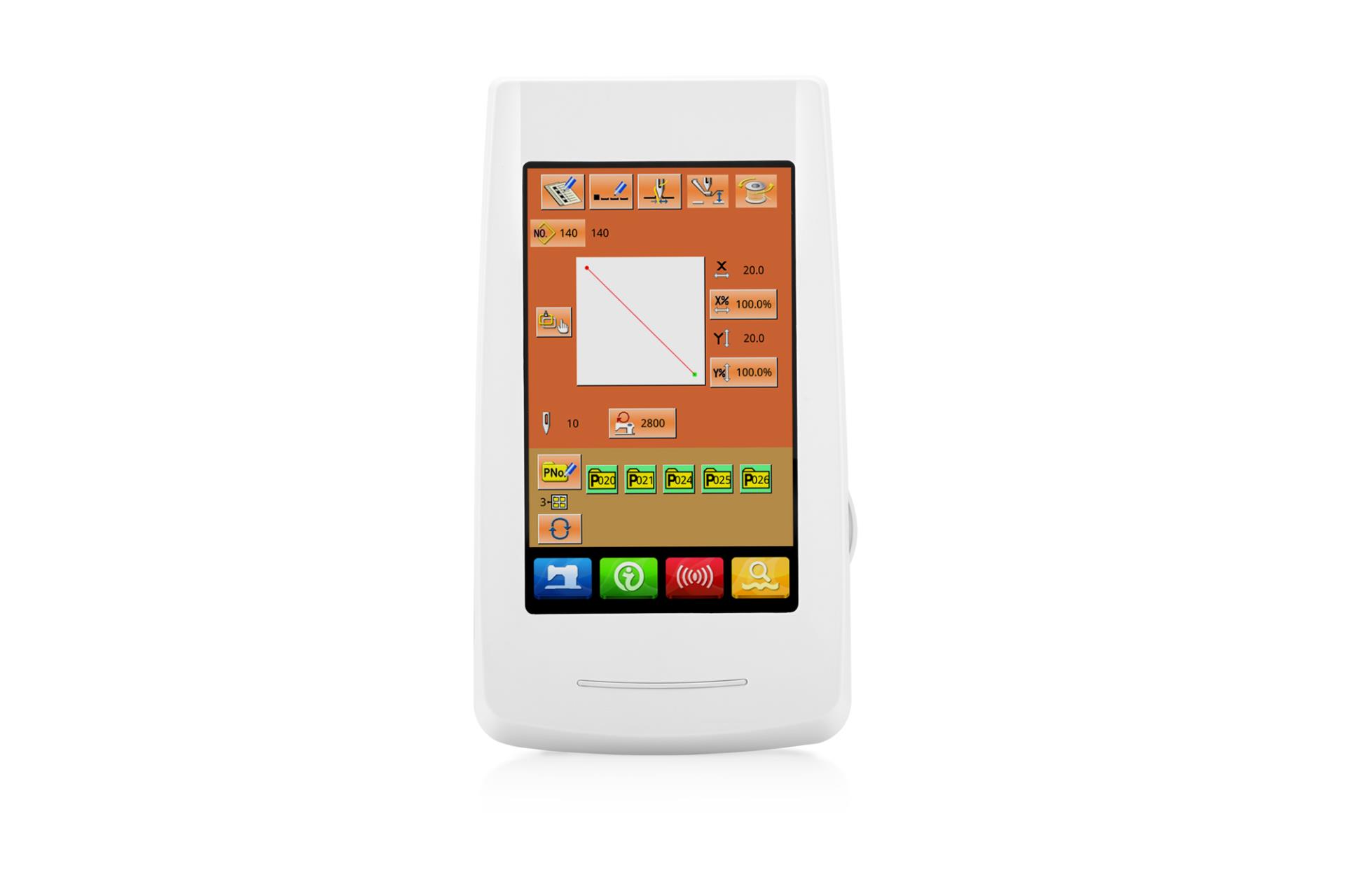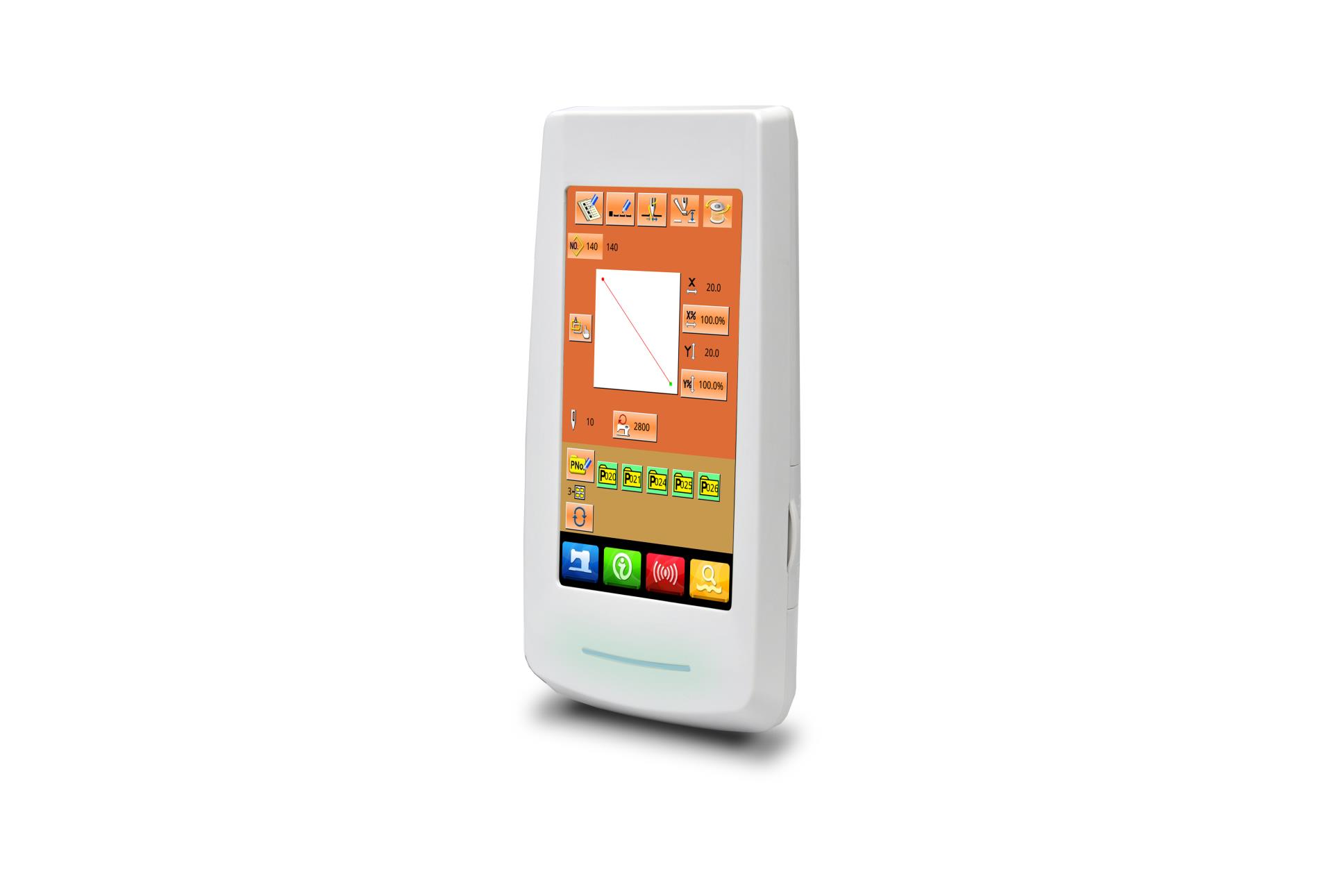 - 多种操作面板可供用户选择,分别为10 英寸/7 英寸/5 英寸真彩液晶触摸屏面板,点阵液晶面板,数码管按键面板,满足高中低档各种机型操作特点的需求。提供花样数据输入输出接口,使用通用USB 接口方式。同时可根据客户的特殊需求定制个性化操作面板的设计方案。操作面板采用图形加多语言注解方式具有高度的可读性,对于初次使用电脑缝纫用户来说非常容易上手,具有优秀的界面友好度。
