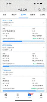 分类查看不同状态工单的生产进度及其他基本信息,详情中可进一步查看产品工单、产品工艺单、设备工单、产量详情、产量记录等详细信息。