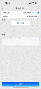 采购计划审核、采购审核、采购入库,使用审批流程,协助管理人员合理管控物料库存;扫描二维码信息进行采购物料数据采集记录。