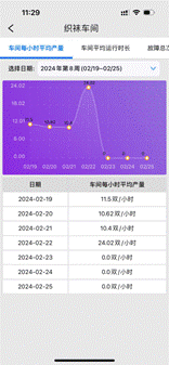 查看整厂所有机器的运行状态、产量、转速等基本信息,详情可查看更多机器、状态、产量、花样的详细信息。