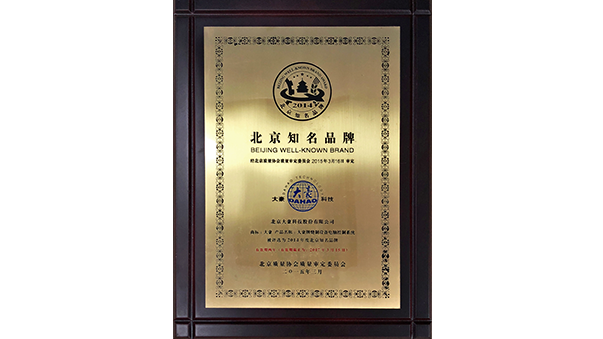 大豪科技公司被北京质量协会评为“北京知名品牌”