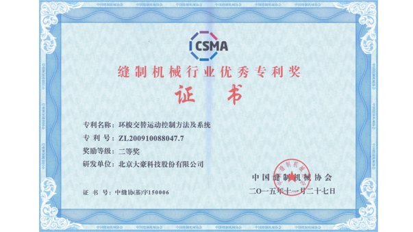大豪公司荣获“缝制机械行业优秀专利奖”