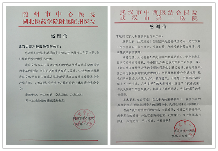 守得云开见月明。经历了两个多月的艰苦奋战,新冠病毒肺炎疫情终于被有效控制,国内形势持续转好,生产生活秩序加快恢复。大豪科技对内积极做好自身防疫,复工复产,最大程度降低疫情对研发、经营的影响,对外始终心系湖北疫区,精心组织,分两批捐赠定点医院急需物资。在这场抗击疫情的人民战争中,大豪人一直在行动。