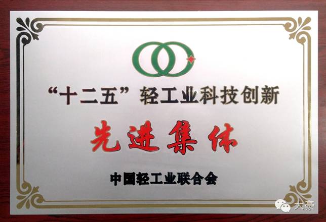 【企业新闻】大豪科技荣获‘十二五’全国轻工业科技创新先进集体”称号