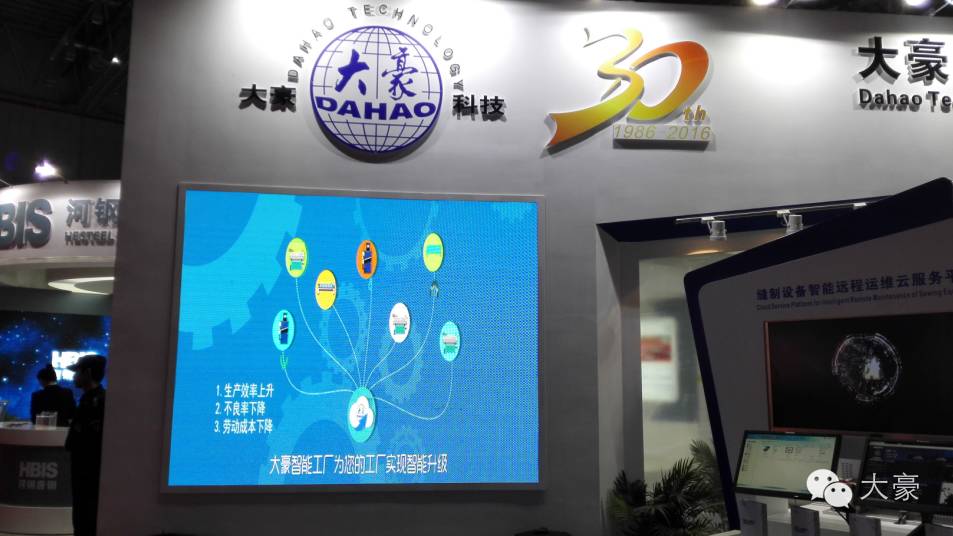 此次大豪参加第十八届中国国际工业博览会特设“2016智能制造试点示范专项展”,虽然和我们以往参加缝制机械行业的专业展会不同,并不是直接面对专业观众和直接用户。但是通过此次作为国家智能制造试点示范项目企业和包括中国商飞、中国中车、美的、蒙牛、中兴等一批国内各个行业的龙头企业在同一个舞台,展现大豪科技在服装纺织这个传统制造行业上创新性实现的智能制造新模式。