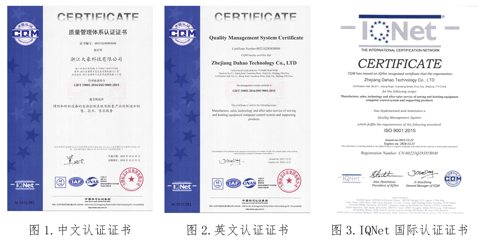 2021年12月7日至11日,浙江大豪科技公司接受并顺利通过了GB/T19001-2016质量管理体系审核。