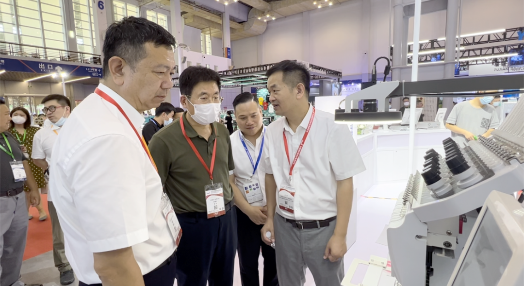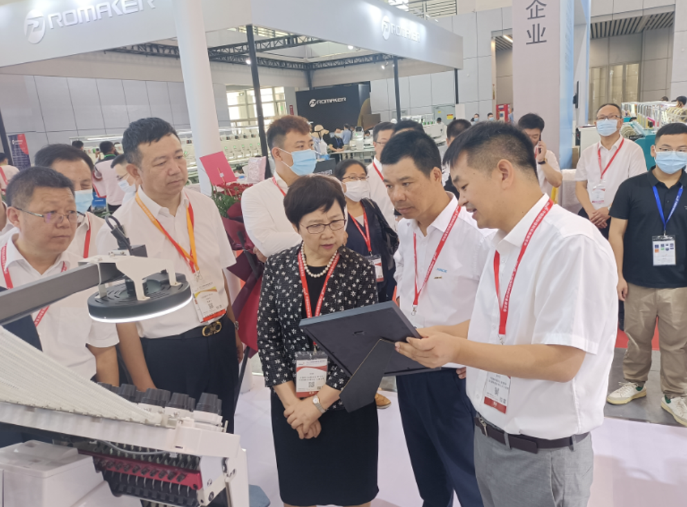 总经理茹水强向中国轻工业联合会副会长、中国缝制机械协会名誉会长何烨、中国轻工业联合会副秘书长杨曙光、中国缝制机械协会理事长杨晓京等领导介绍本届展会大豪推出的最新产品和技术,各位领导充分肯定了大豪对行业技术发展的带动作用。