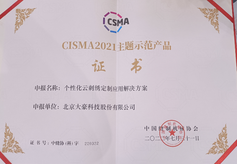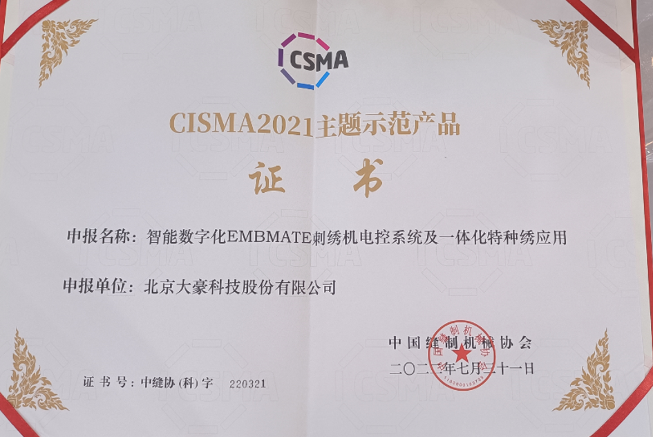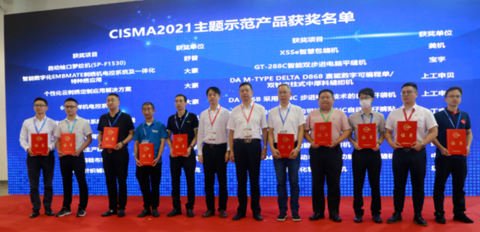展会期间隆重举行了“CISMA2021主题示范产品”颁奖仪式,“智能数字化EMBMATE刺绣机电控系统及一体化特种绣应用”、“个性化云刺绣定制应用解决方案”、“第六代花样机控制系统”等三项产品,在众多优秀参选产品中脱颖而出,喜获“CISMA2021主题示范产品”荣誉称号。