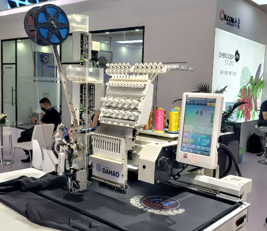 本届展会大豪科技以“自动化、数字化、智能化、个性化”为主旨,通过人工智能、机器人技术、图像识别、模糊控制等先进技术与行业应用充分结合,推出了覆盖刺绣机、特种工业缝纫机、横织机、袜机、手套机领域的多款智慧缝制电控系列新产品。