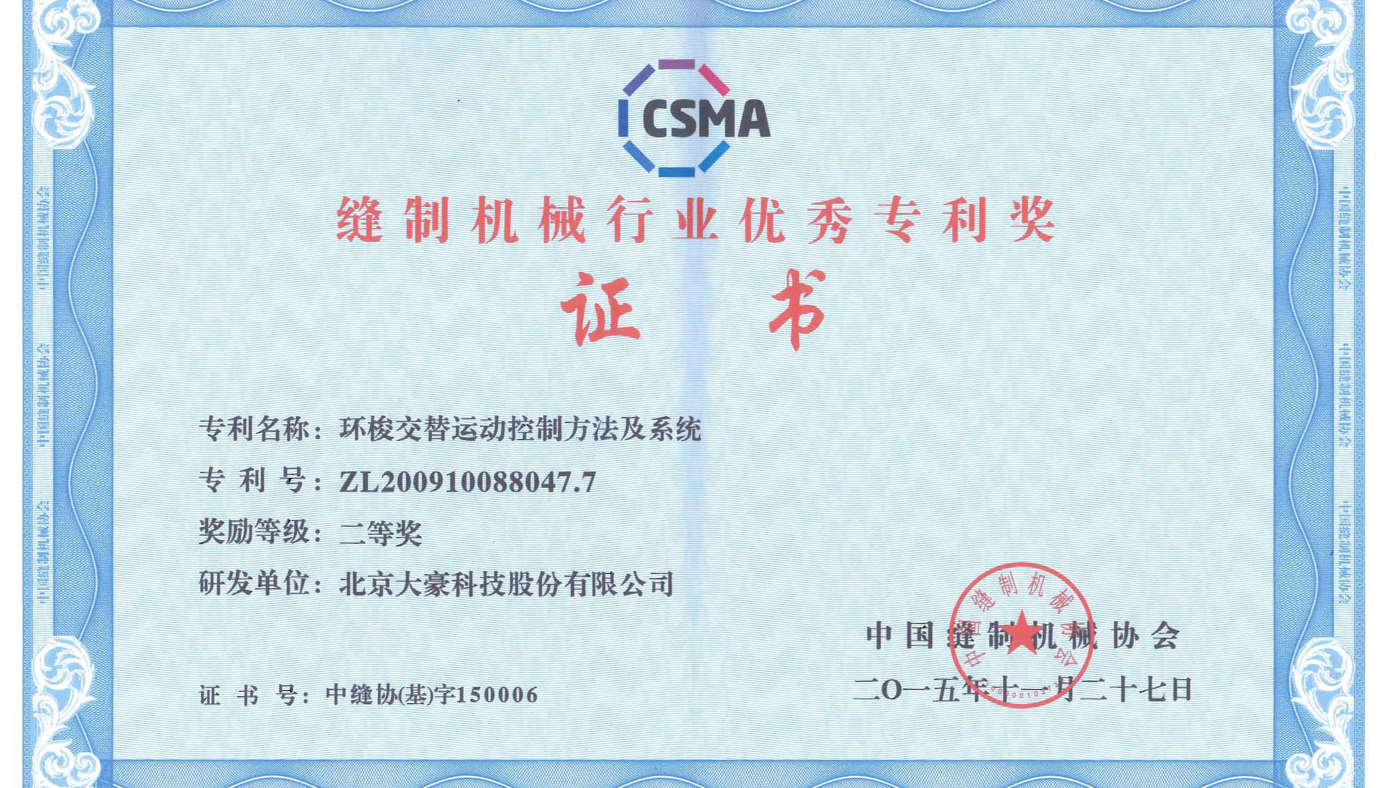 • 缝制机械行业优秀专利奖