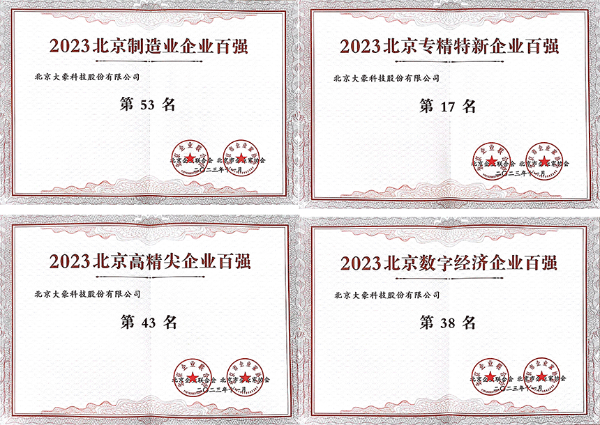 • 荣登多项2023北京企业百强(制造业企业百强、高精尖企业百强、数字经济企业百强、专精特新企业百强)榜单