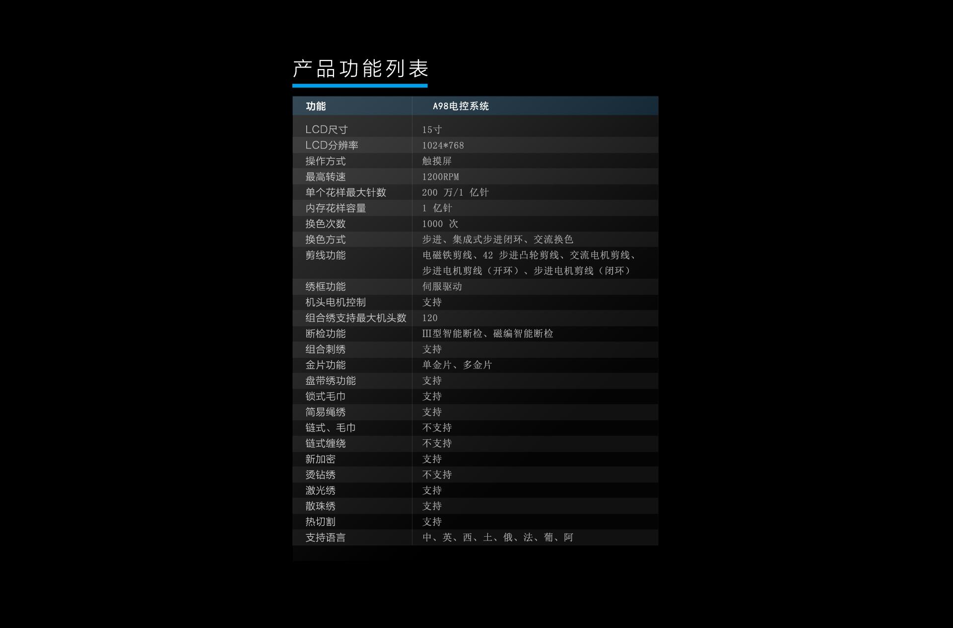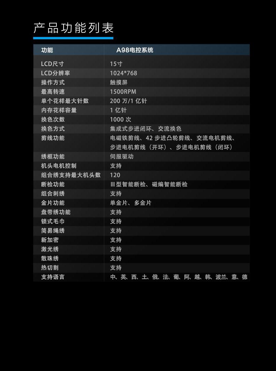 BECS-A98型电脑刺绣机控制系统是大豪公司推出的一款高端刺绣机电控产品,突破以往刺绣机电控系统设计理念,采用全新的集成一体式电控架构优化设计,实现了主控系统和驱动系统的集成整合;电控与整机接口大幅减少,电控安装应用更加简单方便;刺绣机专用的多轴联动控制技术,实现对主轴、X/Y绣框高速协同控制,实现绣品质量和刺绣效率的提升;系统采用全数字开关电源技术,不受电网波动影响,系统供电更加稳定,电磁兼容性和抗干扰性大大提高的同时,降低电控硬件故障率。 A98 是大豪新一代的旗舰型刺绣机电控机型,面向高端应用市场,特别适合高速精品机、多种功能组合复杂刺绣应用。